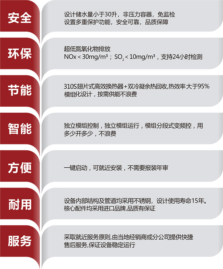 6、綠色環保,使用清潔天然氣或液化氣作為主要能源,排放遠低于國家規定排放標準,有益于環境保護。